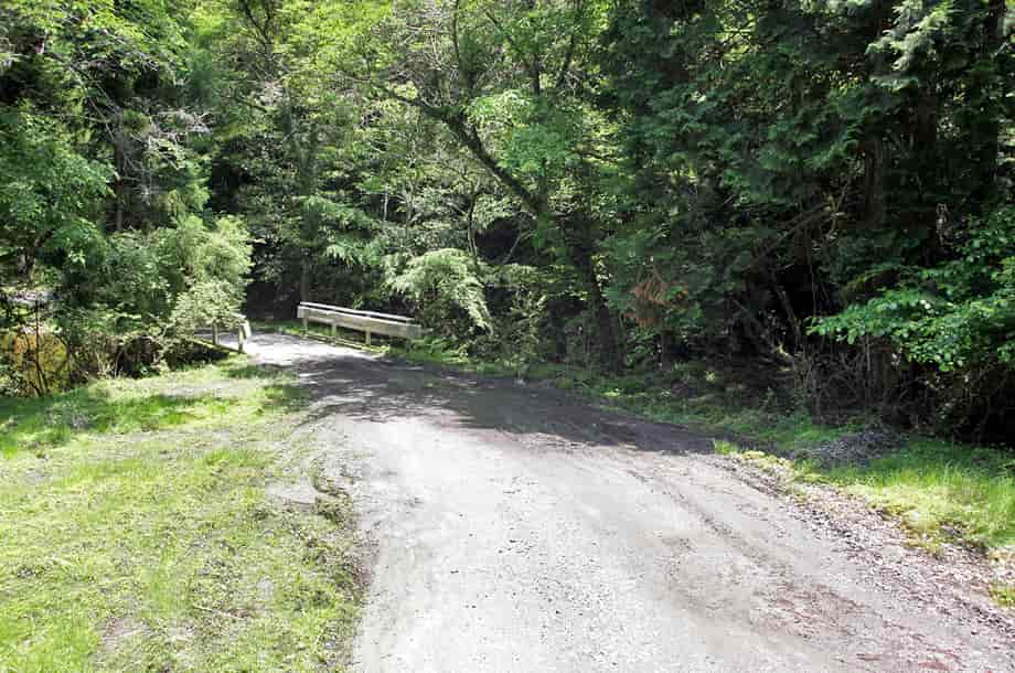 | ▲林道に架かる橋・この橋を渡った先が山道の入り口になる | ▲橋の先にある山道入り口の様子 |