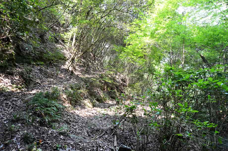 | ▲滝の向い辺りの様子 | ▲太子堂から見た山道 |