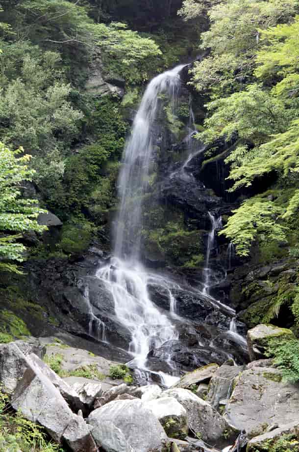 高知県大川村にある「翁の滝」は、大北川地区を流れる大北川の枝沢に流れ落ちている。 枝沢にある滝といっても大きな滝で、30m程の落差はあるだろうか。 滝からの流れは、そのまま大北川に流れ込んでいるが、流れは途中で変わっていて、長大な印象を受ける。 落ち口は狭いようだが、上方部分だけでも、味わいが感じられる。 流れ落ちた水は、途中から斜瀑のようになって、岩の間を通り抜けているが、水量が多いと、この岩を隠すほどにもなるのだろう。 滝自体は対岸から眺めることになるが、沢越しに見えるので、視界が開けていて清々しくもある。 また、やや遠望することになるので、落差はもう少しあるのかもしれない。 いずれにしても、翁の滝は見応えする滝で、目に入った時には、少しばかりの驚きがある。 周辺は自然をよく残していて、四季折々の景観を現わすのだろう。 翁の滝への交通・アクセス さて、翁の滝へは、自動車の場合、大川村役場からだと、役場の前を通る県道17号線を西へ向かう。 少し行くと、大北川を渡る手前で、右へ向かう県道6号線への分岐があるので、この三差路を右折する。 この分岐には「白滝・大北川 県道6号線 →」の道路案内や、「白滝の里 →」などの案内板があるので、すぐに分かる。 また、分岐には、大きな大川村の案内板も設置されているので、参考にしておくとよい。 左折してからは道なりに走って行けばよいが、距離の割には、時間が長く感じられるかもしれない。 道なりに走って行くと、道路左に堰堤があり、その奥にも滝が流れ落ちているのが見える。 この堰堤を過ぎると、道路左にトイレがあり、その先は分岐になっていて、右へ進むと橋を渡るようになるが、翁の滝へは、この橋を渡らずに、そのまま直進する。 橋を渡らずに進んで行くと、やがて道が逆戻りするように、大きく左へと曲がるところがある。 翁の滝は、この道が曲がるところに流れ落ちていて、自動車で走っていても、必ず目に入る。 ここまで、大川村役場から10分程で、自動車は、付近の邪魔にならないところを探して駐車することになるが、カーブになっているので、駐車位置にはよく注意する。 滝は、ここから対岸に眺めることになるが、道路が曲がる辺りには、コンクリートの壁が造られている。 これは転落防止のためだが、滝はやや見づらくなってしまう。 ところで、翁の滝は地元の方に教えていただいたのだが、その時は「大曲りの滝」と教えていただいた。 成程、道が大きく曲がるところに流れ落ちているので、うまい名前だと思う。 しかし、「翁の滝」は珍しい名前だと思うが、その所縁などが分からないので、やや気にかかる。 尚、高知自動車道・大豊インターから大川村役場までの交通は、「銚子滝」で紹介しているが、JR土讃線・大杉駅から嶺北観光自動車が大川村役場までバスを運行している。 |